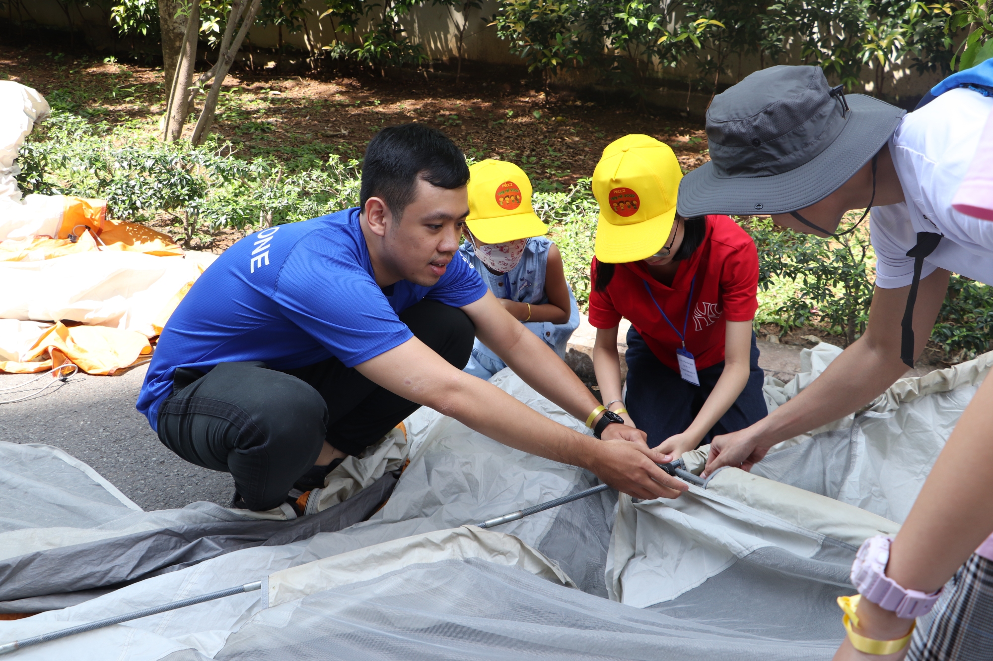 Phần tạo nên hứng thú cho các bé nhất chính là được hướng dẫn cách dựng lều trại, cách trang trí lều và trang trí lồng đèn. Sau đó, các đội sẽ thi đua với nhau để tìm ra sản phẩm đẹp nhất. Kết thúc chương trình Trại hè, các bé được ăn trưa và nghỉ ngơi để tiếp thêm sức hoạt động vào buổi chiều.