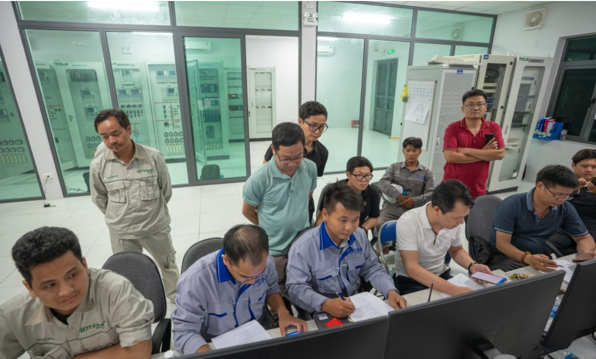 Nhân viên vận hành nhận lệnh từ Trưởng ca tại Phòng điều khiển, trực tiếp giám sát và phối hợp xác nhận trạng thái thiết bị tại chỗ theo phiếu thao tác của Điều độ miền Nam (A2).