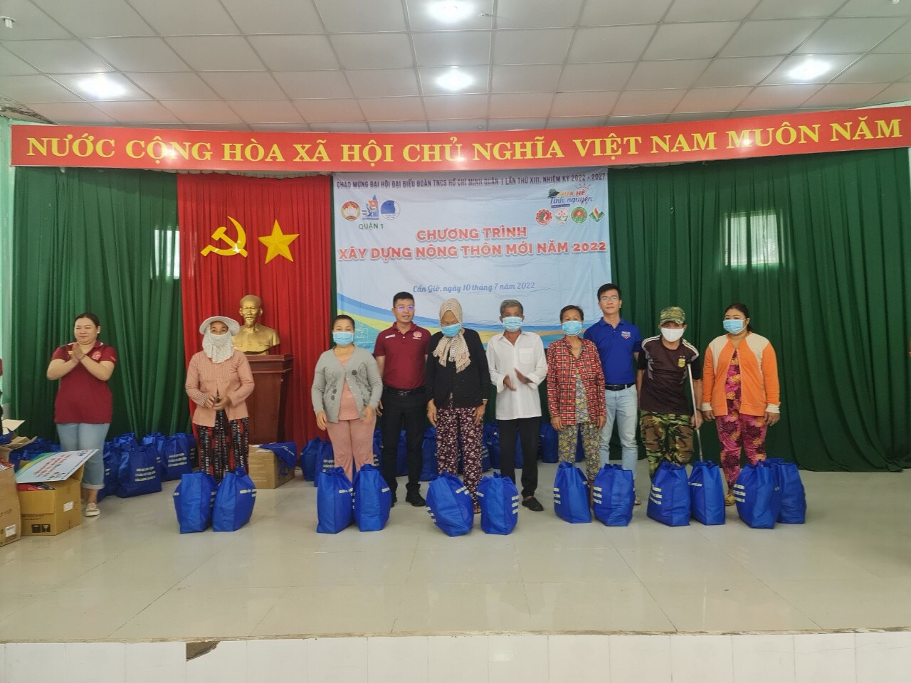 Với mục đích quan tâm chăm lo đời sống vật chất, tinh thần cho người dân, gia đình khó khăn và các em thiếu nhi trên địa bàn các xã xây dựng Nông thôn mới tại huyện Cần Giờ, chương trình xây dựng Nông thôn mới năm 2022 cùng Quận Đoàn Quận 1 đã diễn ra thành công với sự tham gia và phối hợp nhịp nhàng giữa các đơn vị.