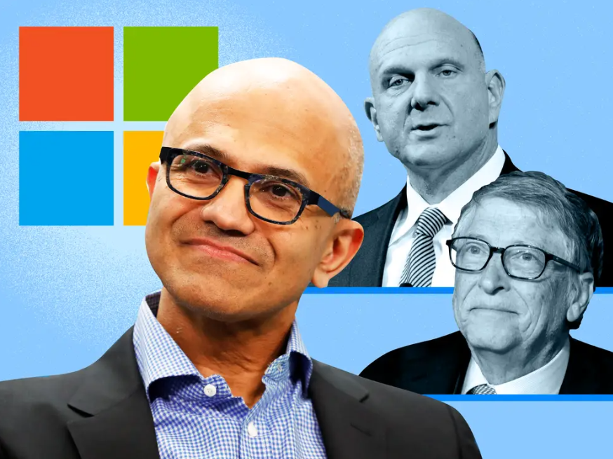 Satya Nadella – CEO đương nhiệm của Microsoft cùng các CEO tiền nhiệm: Steve Ballmer và Bill Gates. Nguồn: Internet.