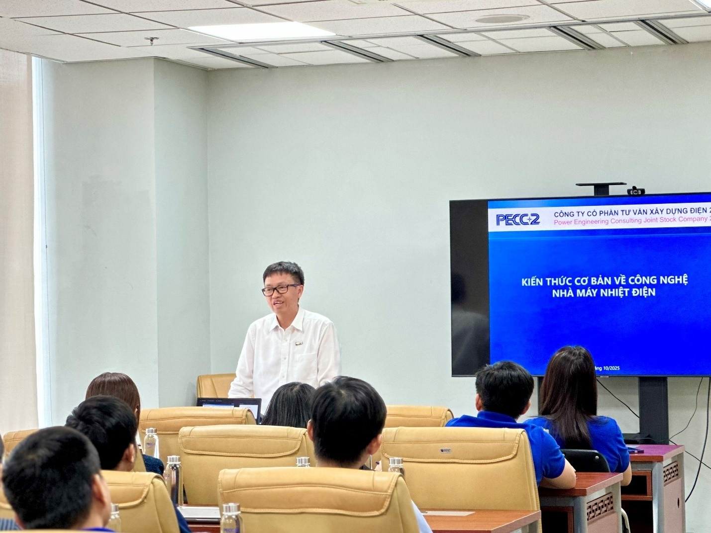 Chiều ngày 10/10, nhân sự PECC2 có cơ hội tham dự một buổi đào tạo nội bộ đặc biệt và ý nghĩa do Chủ tịch Nguyễn Chơn Hùng trực tiếp đứng lớp. Với chủ đề "Kiến thức cơ bản về công nghệ Nhà máy Nhiệt điện” dành cho các anh chị em không chuyên về kỹ thuật, khóa học đã không chỉ dừng lại ở việc truyền đạt những kiến thức chuyên môn cốt lõi mà còn lan tỏa mạnh mẽ tinh thần học hỏi không ngừng và văn hóa đóng góp nội bộ trong toàn thể nhân sự Công ty.