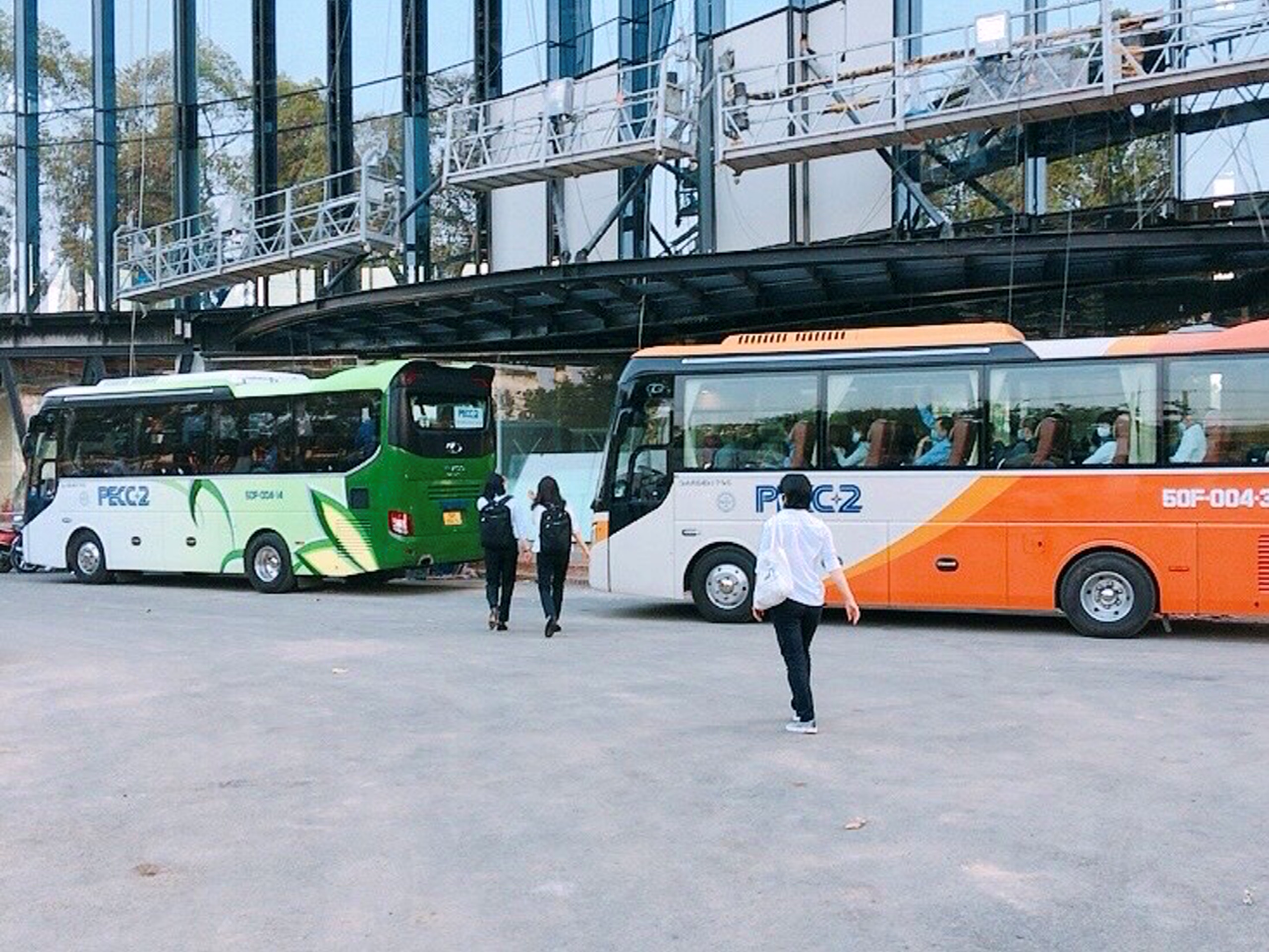 Người lao động PECC2 háo hức sử dụng xe buýt đưa rước thay cho phương tiện cá nhân