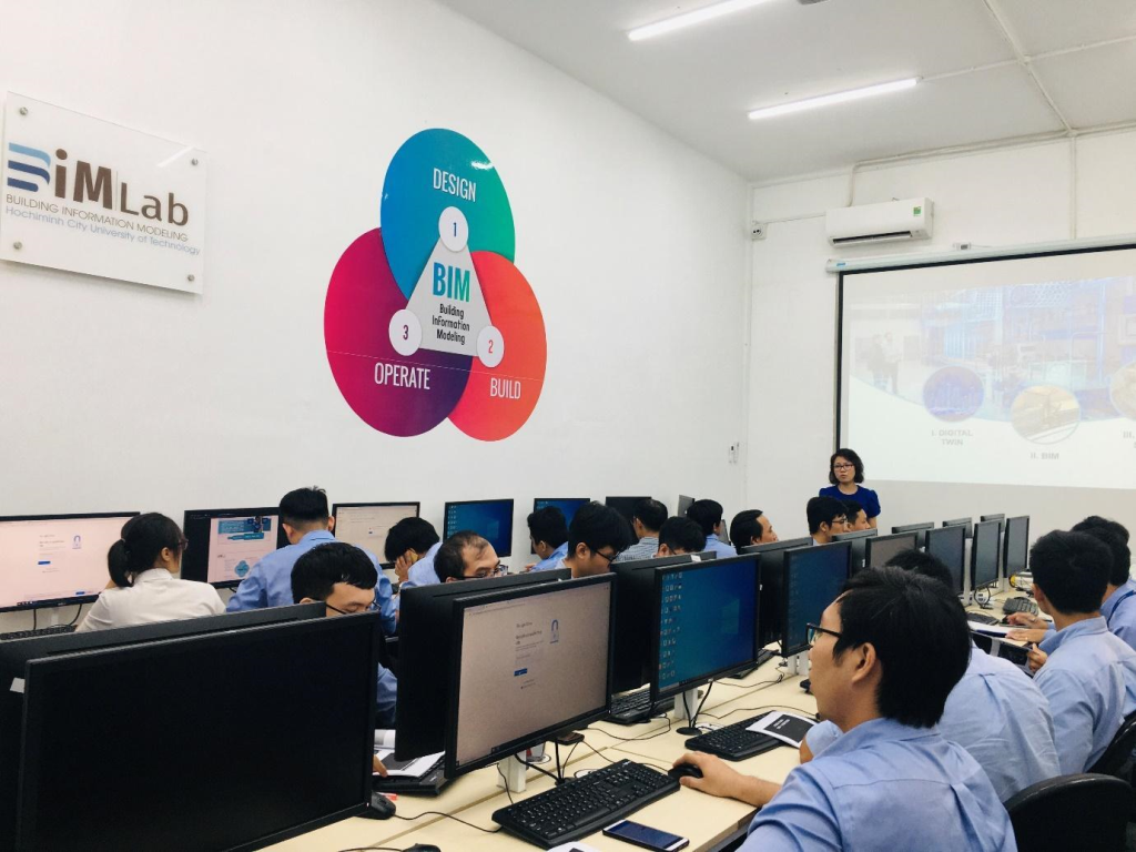 Để cụ thể hóa thỏa thuận hợp tác này, ngay chiều ngày 02/11/2020, trường ĐHBK đã tổ chức khóa đào tạo “Kiến thức cơ bản về mô hình thông tin số công trình (BIM) – Scan to BIM và ứng dụng BIM quản lý dự án” trong 8 buổi với 30 giờ đào tạo cho các kỹ sư của PECC2. Tại đây, các kỹ sư của PECC2 đã được cung cấp các kiến thức tổng quan về BIM, về Scan to BIM và các loại thiết bị, quy trình để thực hiện Scan to BIM. Ngoài ra, khóa học cũng hướng dẫn các kỹ sư làm quen và thực hành sử dụng các phần mềm thực hiện trên hệ thống máy tính của trường ĐHBK.