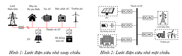 Trong đó, lưới điện siêu nhỏ xoay chiều được kết nối với lưới điện siêu nhỏ một chiều thông qua bộ biến đổi liên kết và các thiết bị bảo vệ. Bộ biến đổi liên kết này có chức năng đảm bảo sao cho hệ thống hoạt động tốt, phù hợp với yêu cầu điều khiển trao đổi công suất giữa thanh cái AC và DC, đảm bảo giá trị điện áp và tần số tại điểm kết nối chung nằm trong ngưỡng cho phép.